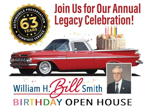| Hershey. PA - On Friday, January 23rd, celebrate with teh museum as they honor the legacy of Museum founding father William H. "Bill" Smith. His accomplishments, foresight, and dedication established the Museum as America's Transportation Experience. From 9 a.m. to 5 p.m., receive FREE ADMISSION, tours, and birthday cake. Bill's 1959 Chevrolet El Camino will be on display. Also, enjoy three featured exhibits: "Old School Rods and Customs," "Mustang: Then & Now, " and "Saab Showroom." Also, from noon to 1 p.m., Museum Board President Hank Hallowell and Curator Stan Sipko will fire up the grills and prepare a FREE LUNCH for all guests (While supplies last). |